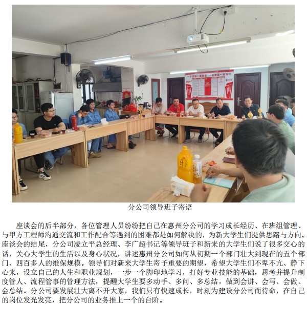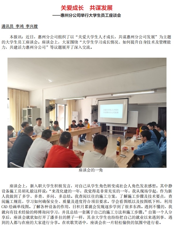惠州分公司舉行大學(xué)生員工座談會