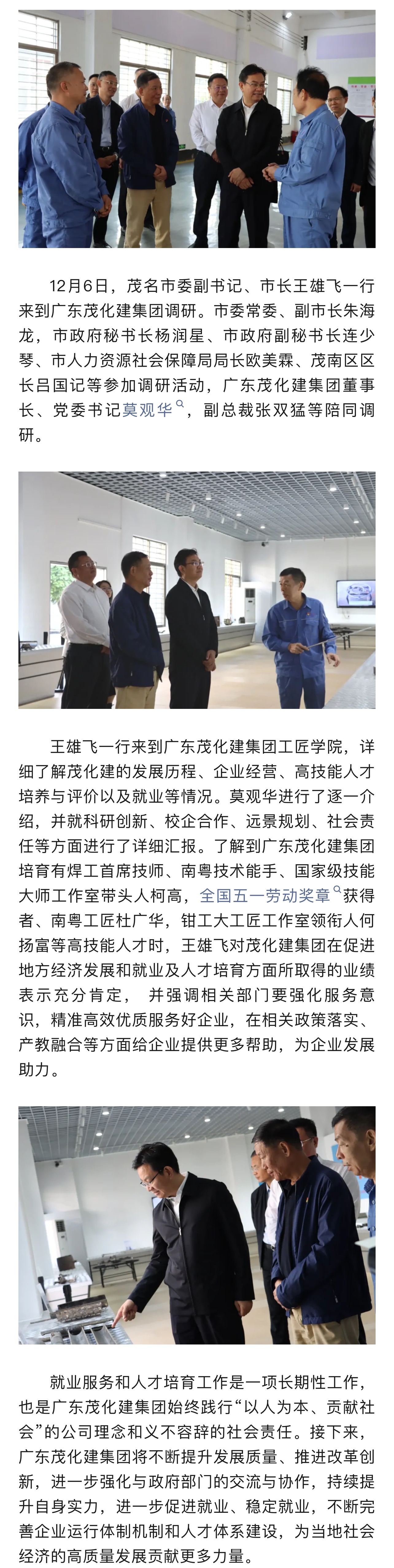 茂名市委副書(shū)記、市長(zhǎng)王雄飛到廣東茂化建集團(tuán)視察指導(dǎo)工作
