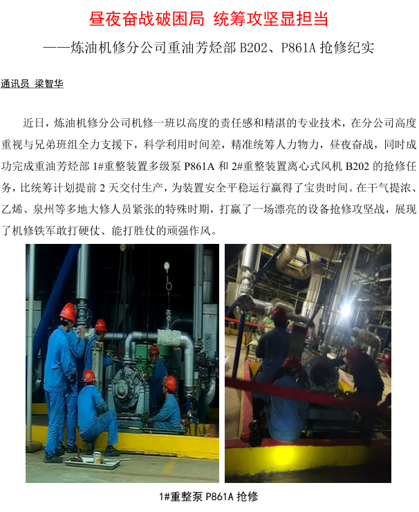 煉油機修分公司重油芳烴部 B202、P861A 搶修紀實